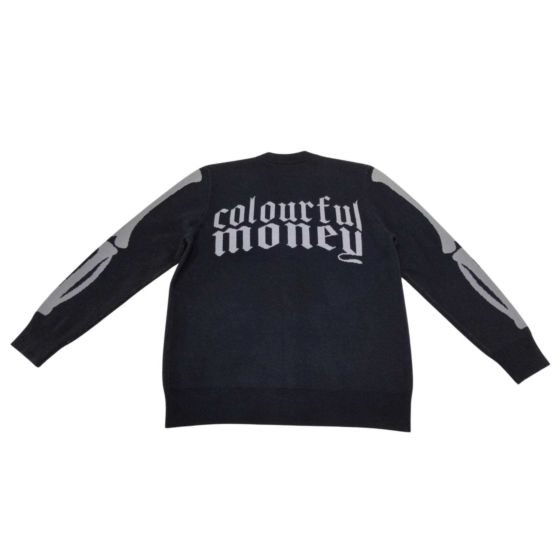 The Colourful Money Skeleton Cardigan is a bold, art-led statement piece designed to expose what’s underneath the grind — the structure, the pressure, the heart that keeps going.