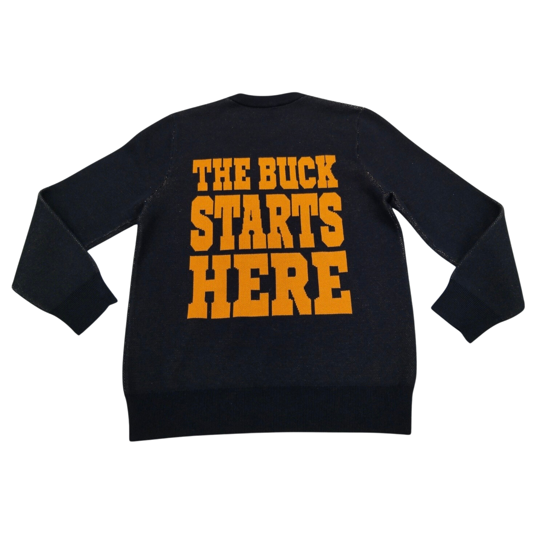 The Buck Starts Here™ Sweater is a one-of-one, hand-finished Colourful Money original — designed for those who understand that responsibility, power, and abundance all start with ownership.